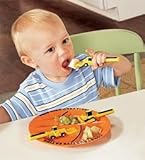 Constructive Eating Utensils. Build healthy eating habits and imaginations with the sturdy Constructive Eating Utensils. For little builders, choose the set that includes a bulldozer pusher, fork lift, and front-loader spoon. Green thumbs with love the garden tools set that includes a hoe pusher, rake, and shovel spoon. The Constructive Eating Plate features places to store specific utensils. All items are PVC/BPA-free and dishwasher safe. For ages 2 and up. Available Styles Construction Site Flower Garden Size Utensils: 4" to 5" Eating Plate: 9" Read more
