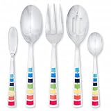 Let the Fiesta Masquerade Mirror collection add a festive flair to your dining experience. Meticulously crafted to last long, the collection blends beautifully with Fiesta dinnerware. retains beauty without polishing seamless bonds resist cracking or splitting handles withstand impact and heat 5-piece hostess set includes: serving spoon slotted serving spoon cold meat fork butter knife sugar shell Premium stainless steel/epoxy inlays. Dishwasher-safe. Fiesta Masquerade Mirror flatware collection is imported. Available in sizes: 5PC. Available in colors: 5 Masquer. Read more