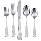 10% Off on orders over $75. Use Code: SPE10. This complete Flight Service for 8 brings easy and affordable elegance to your table. This set contains the all of the essentials for your entertaining needs. Set Includes: 8 Dinner Knives, 8 Dinner Forks, 8 Salad Forks, 8 Dinner Spoons, 8 Teaspoons, Pierced Serving Spoon, Serving Spoon, Serving Fork, Sugar Spoon and Butter Knife Made of Quality 18/0 Stainless Steel with a bright, hi-luster finish Detailing on handle suggests movement, additional detailing appears on the salad fork tines Limited Lifetime Warranty Read more