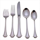 The silver plate French Chippendale pattern features tapered fluted handles and delicate scroll motifs. A traditional pattern that is elegant compliment to fine dinnerware and stemware. Read more