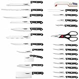 Set Includes One Six Star+ 14.5-inch Showtime All-Purpose Knife One Six Star+ 17.25-inch Carving Knife One Six Star+ 15-inch Large Filet Knife One Six Star+ 13.25-inch Bread & Bagel Knife One Six Star+ 13.125-inch Chef's Knife One Six Star+ 14.5-inch Saw Knife One Six Star+ 12.75-inch Boning Knife One Six Star+ 11.875-inch Sportsman Knife One Six Star+ 9.25-inch Chop 'n Serve One Six Star+ 11-inch Cheese Knife One Six Star+ 11.875-inch Cleaver One Six Star+ 11.75-inch Carving Fork One Six Star+ 9.375-inch Utility Knife Eight Six Star+ 9.25-inch Steak Knives One Six Star+ 7.75-inch Paring Knife One Six Star+ 7.75-inch Garnish Knife One Six Star+ 8.25-inch Poultry/Kitchen Shears One Six Star+ Knife Sharpener Read more