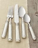 Exclusively ours. Substantial handles of gleaming pewter give this handcrafted 18/10 stainless steel flatware service an Old World feel. Made in Italy. Dishwasher safe. 20-piece service includes fork, knife, dessert fork, dessert spoon, and coffee s... Read more