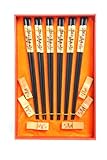 Abacus Pack of 6 Decorative Oriental Chinese Wooden Chopsticks Set with Panda Design and Matching Chopstick Rest (CS-05 US)