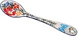 Polish Pottery Ceramika Boleslawiec, 1022/238, Spoon Medium, 1 1/4 by 6 1/8 Inches Long, Royal Blue Patterns with Red Cornflower and Blue Butterflies Motif